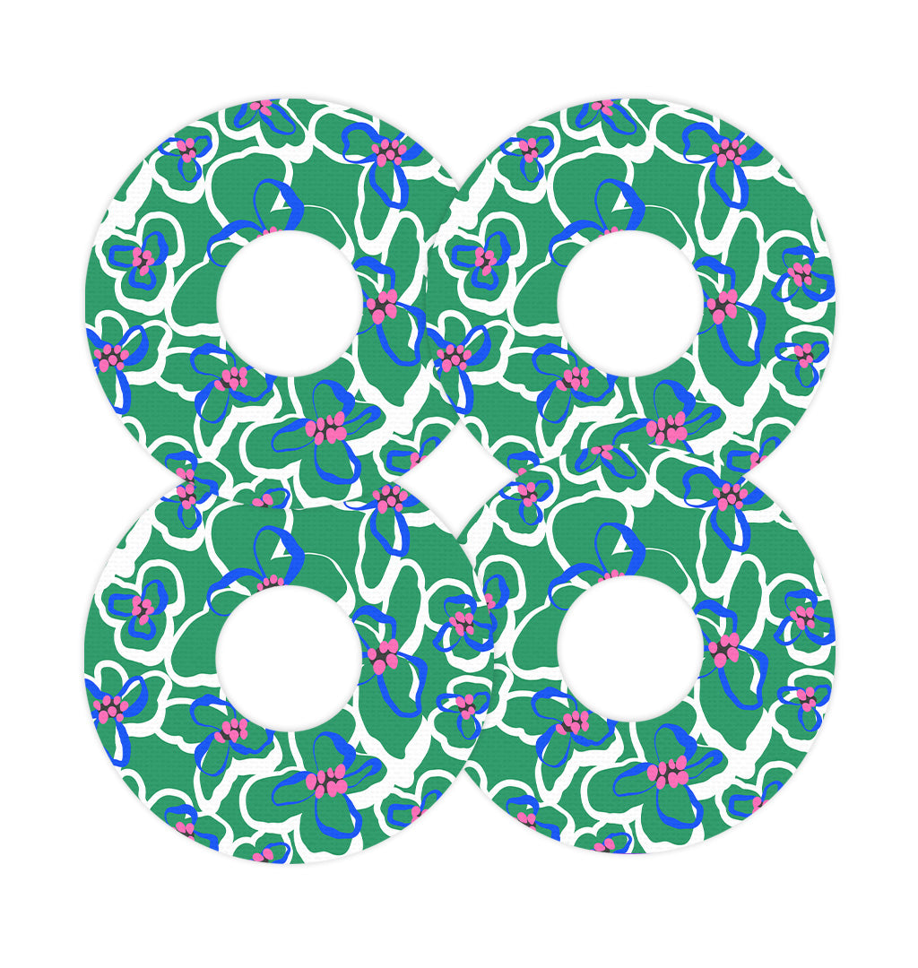 Mod Blooms — graphic mod-style flowers with a retro sixties vibe. This decorative patch tape is designed to be worn over compatible FreeStyle Libre 3 Plus and Lingo CGM sensors during everyday activities, adding a personalized outer layer for daily wear. Each wear is bold and retro — a nod to classic flower power — a reminder that managing diabetes can look exactly how you want it to.
