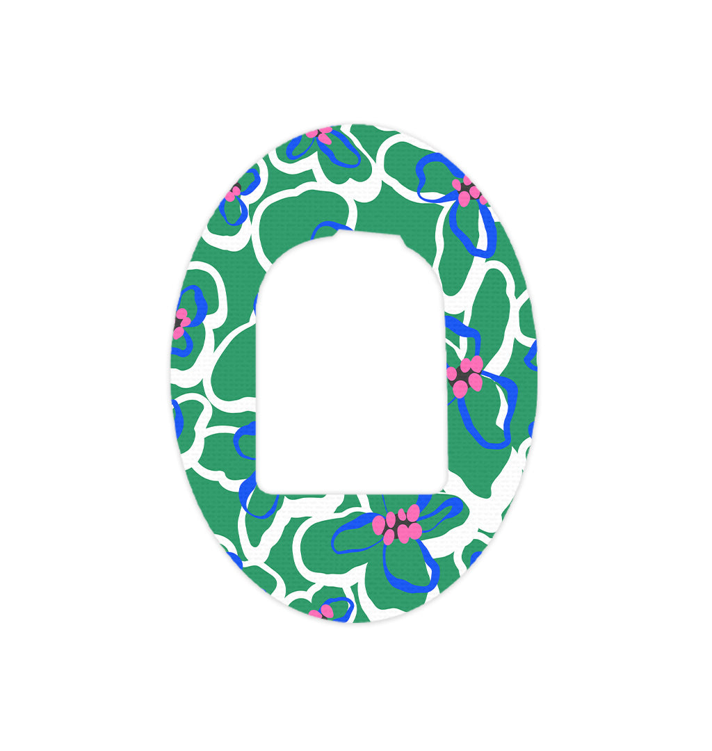Mod Blooms — graphic mod-style flowers with a retro sixties vibe. This decorative patch tape is designed to be worn over compatible Omnipod insulin pump pod sensors during everyday activities, adding a personalized outer layer for daily wear. Each wear is bold and retro — a nod to classic flower power — a reminder that managing diabetes can look exactly how you want it to.
