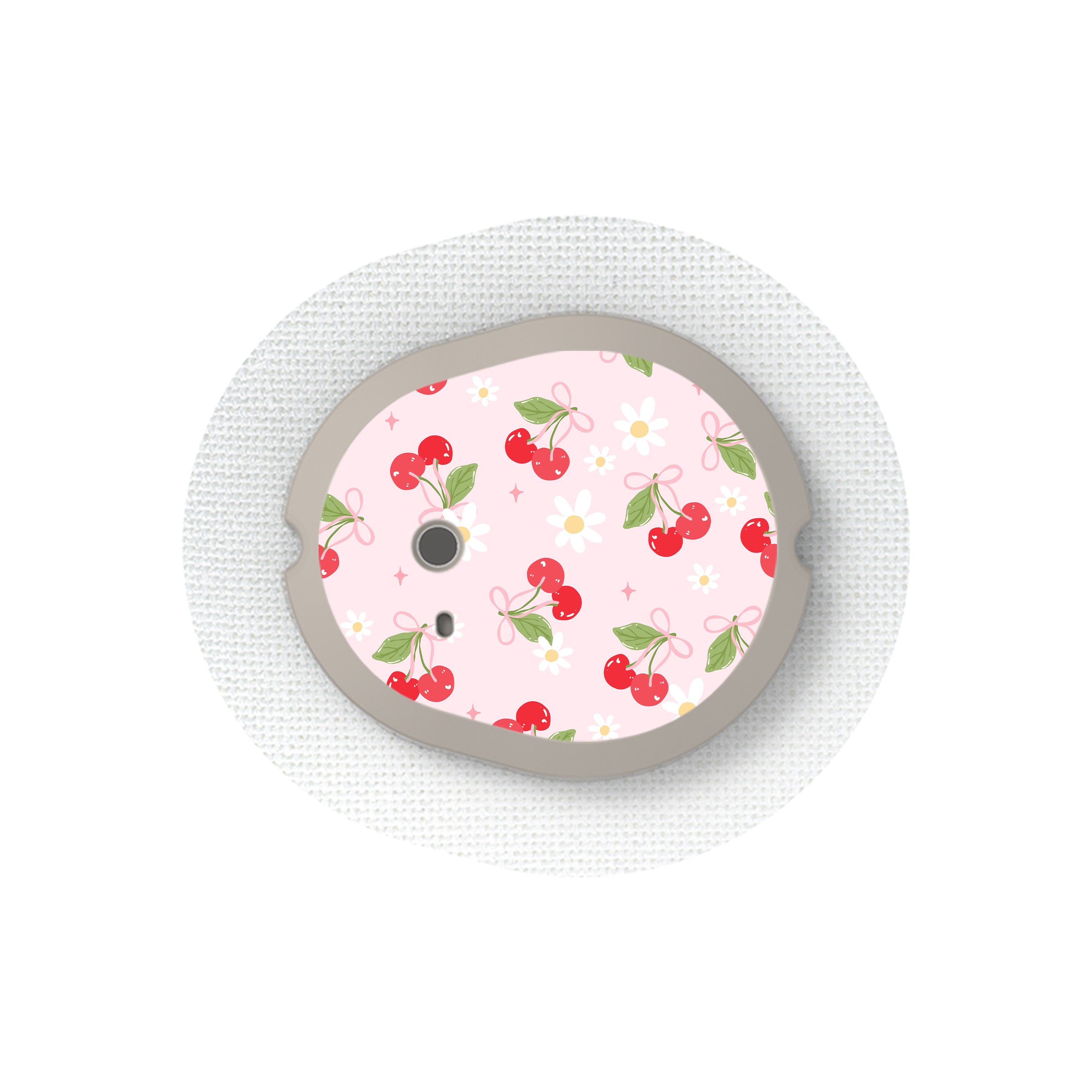 Cherry Coquette — sweet cherry motifs with a playful coquette aesthetic. This precision-cut decorative sticker is designed to personalize the transmitter cap of your Dexcom G7 or Stelo sensor without obstructing buttons, screens, ports, or sensors. Each wear is charming and feminine with a retro-sweet twist — a reminder that managing diabetes can look exactly how you want it to.